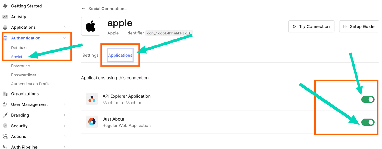 - https://manage.auth0.com/dashboard/eu/justabout/connections/social