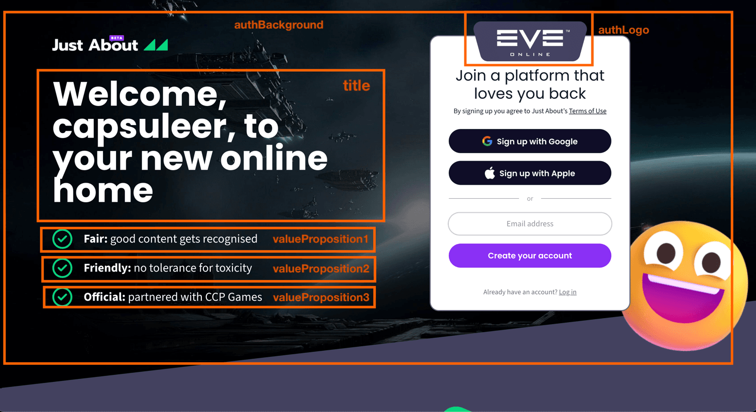 campaignDetails section. This is the home of all of the Community specific sign-up and onboarding images, text and links.campaignDetails to a new Community or one that hasn't used this feature before, you may see a message reading No entry yet. Click on the button below to add one., click that to get started. If you're editing an existing set of campainDetails you won't see that message and can skip this step.valuePropositionX text entries will automatically format anything to the left of : with Bold type (as the key shows).onboardingUri should be a fully defined URL (eg. https://justabout.com/...)